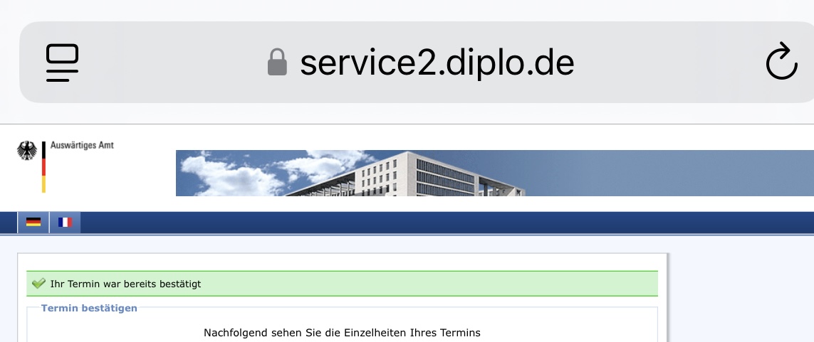 Das Erste, was ihr tun müsst, ist, die Terminbestätigung aus der E-Mail mitzunehmen, in der sie euch über den Termin informieren. Am Eingang zeigt ihr die Bestätigung zusammen mit eurem Pass vor. Das Dokument wird abgestempelt, und dann dürft ihr eintreten.
